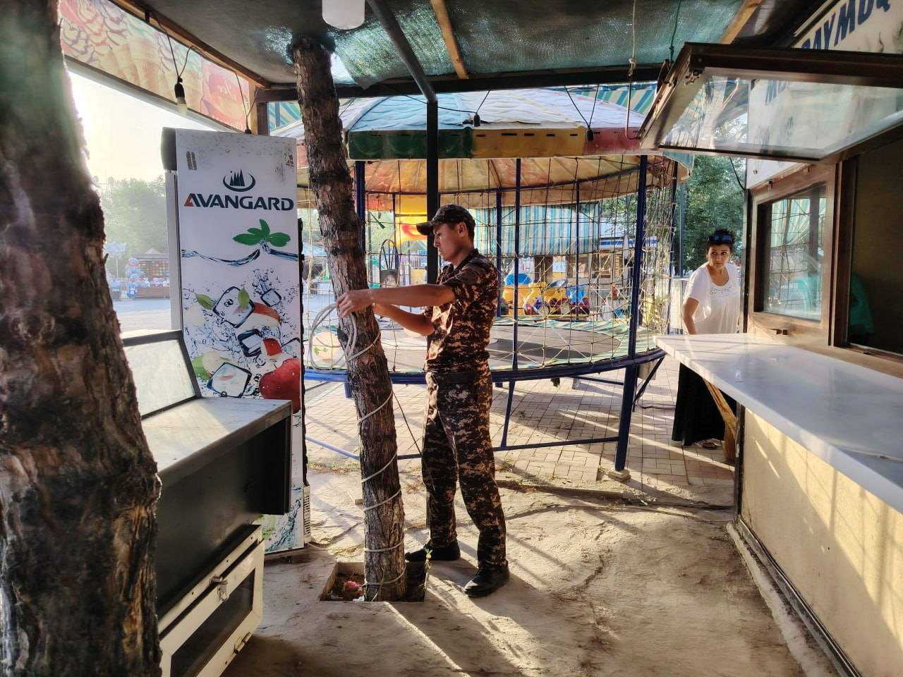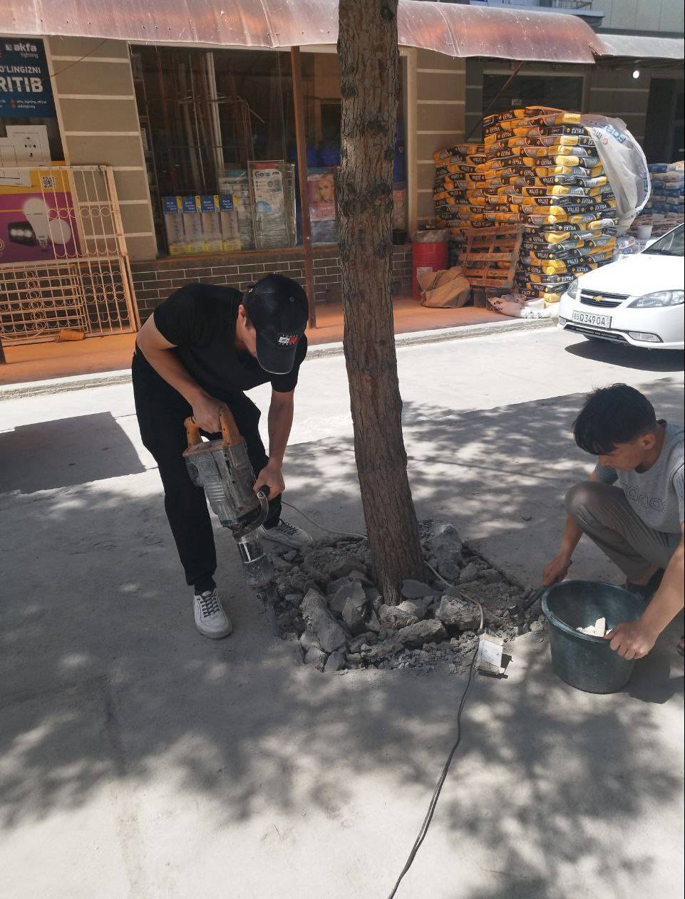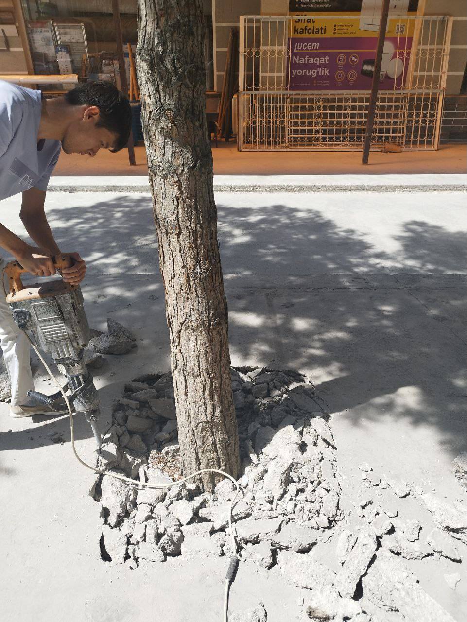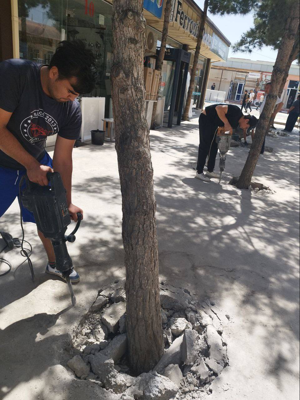 В рамках акции в парке культуры и отдыха имени Алишера Навои города Навои было выявлено 23 случая. Из них 7 деревьев были закрыты рекламными баннерами, 9 - электрическими проводами и гирляндами, а 7 - забетонированы.
