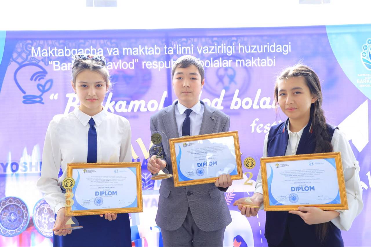 Учащиеся школ«Баркамол авлод» Кызылтепинского, Навбахорского районов и города Зарафшан отмечены дипломами первой степени в направлениях «ремесленничество и ручной труд», «туризм и экология» (карвинг), «иностранные языки» соответственно.