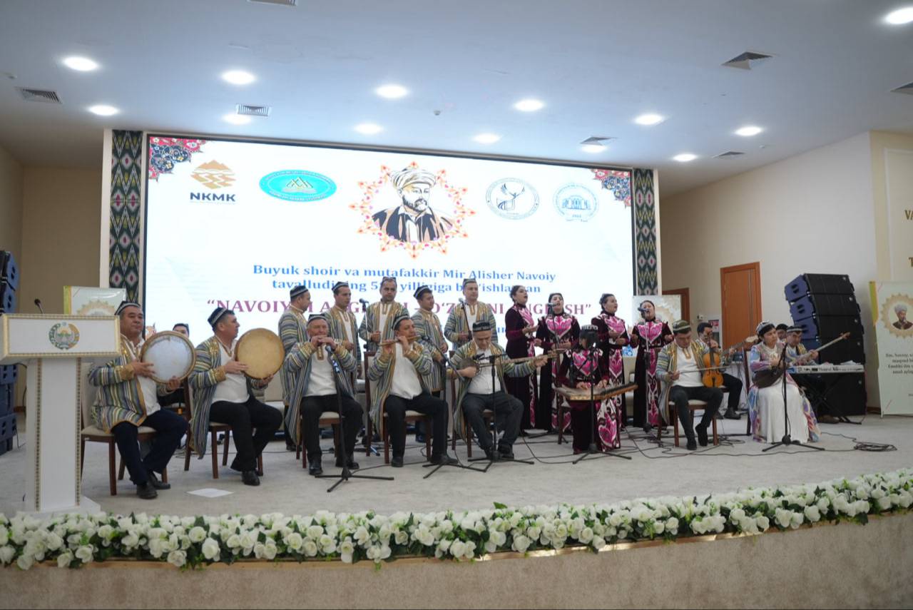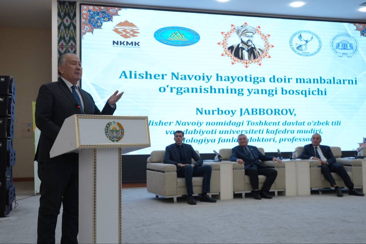 Участников мероприятия приветствовал Председатель правления – генеральный директор АО «НГМК», Герой Узбекистана Кувандик Санакулов. Отмечена осуществляемая планомерная работа по всестороннему изучению богатого и многогранного творчества нашего великого предка, широкой пропаганде его произведений. В этом плане заслуживает внимания создание в стране крупной школы по изучению творчества Алишера Навои. Наряду с такими навоиведами, как Азиз Каюмов, Абдукодир Хайитметов, Суйима Ганиева, заслуживают внимания исследования, проводимые в последние годы учеными, такими как Шухрат Сирожиддинов, Муслихиддин Мухиддинов, Олим Давлатов, Нурбой Жабборов. Исследователи прославляют гениальность поэта, широко популяризируя его жизнь, творчество и бесценные произведения.