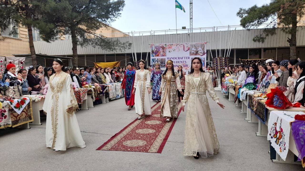 На ярмарке вниманию участников мероприятия были представлены образцы прикладного искусства, основанные на творческих работах студентов 1, 2 и 3 курсов по направлению «иностранный язык и литература». В частности, посетители ярмарки смогли ознакомиться с продукцией, выполненной в стиле узбекской национальной вышивки, золотого шитья, национальных кукол, с работами мастеров живописи, образцами миниатюрного искусства, изысканными национальными украшениями, красочными национальными тканями, различными изделиями из вторичного сырья, а также с изготовленными руками студентов национальными подарками и сувенирами.
