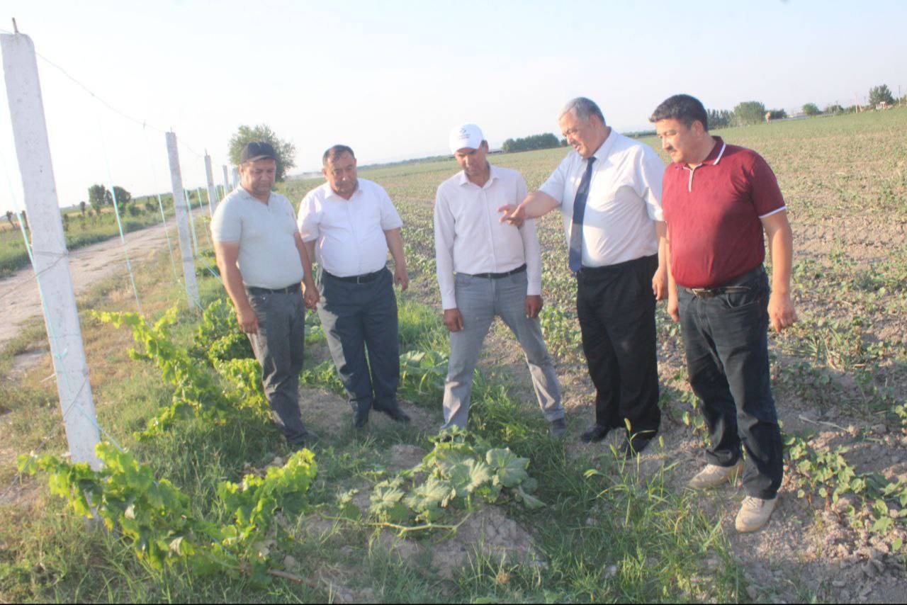 Члены рабочей группы ознакомились с земельными участками, отведенными населению под дехканские хозяйства, эффективным использованием приусадебных хозяйств, своевременной уборкой выращенного урожая.