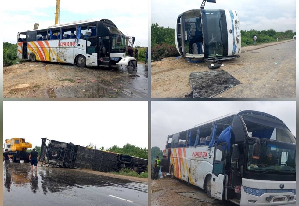 Согласно данным, инцидент произошел в 10 часов утра. 43-летний К.О. не справился с управлением, в следствие автобус перевернулся на обочину. Судя по кадрам с видео, автобус перевернуло во время выполнения маневра водителем.