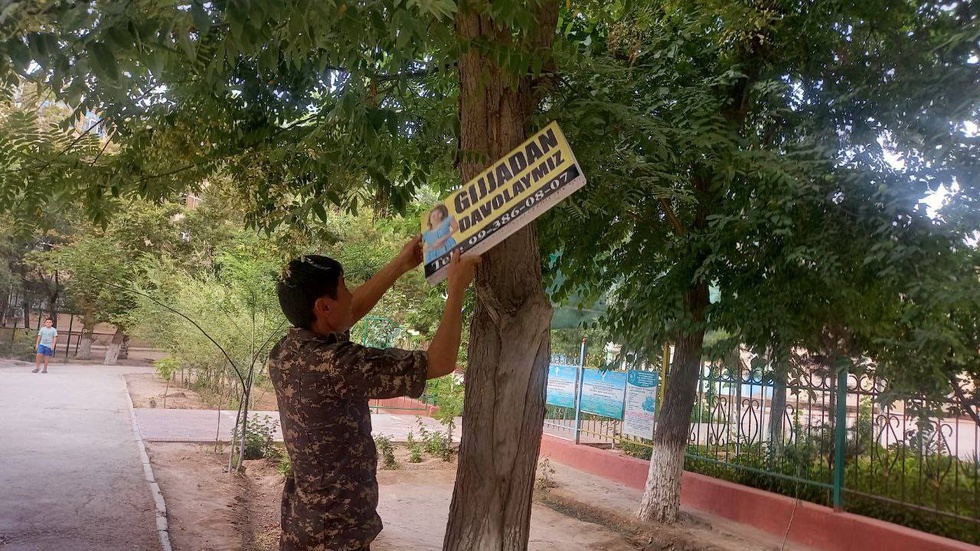 В ходе мероприятий в городе Навои на территориях четырех улиц экологи обнаружили 150 деревьев, на которых были установлены рекламные баннеры, еще 50 саженцев «задыхались» от электропроводов.