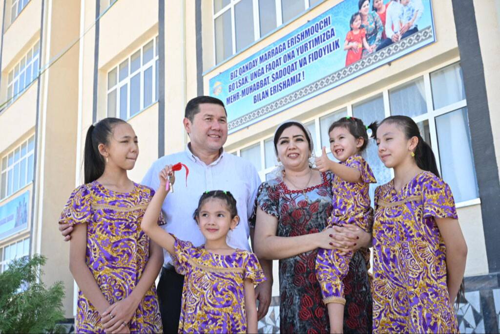 В текущем году для улучшения жилищных условий работников был построен четырехэтажный жилой дом на 32 квартиры. Из них 24 – двухкомнатные и 8 – трехкомнатные. На строительство и обустройство жилья комбинатом направлено около 17 млрд сумов. В каждой квартире установлены электрические плиты и водонагреватели, а на территории дома есть детская площадка, скамейки и другие удобства.