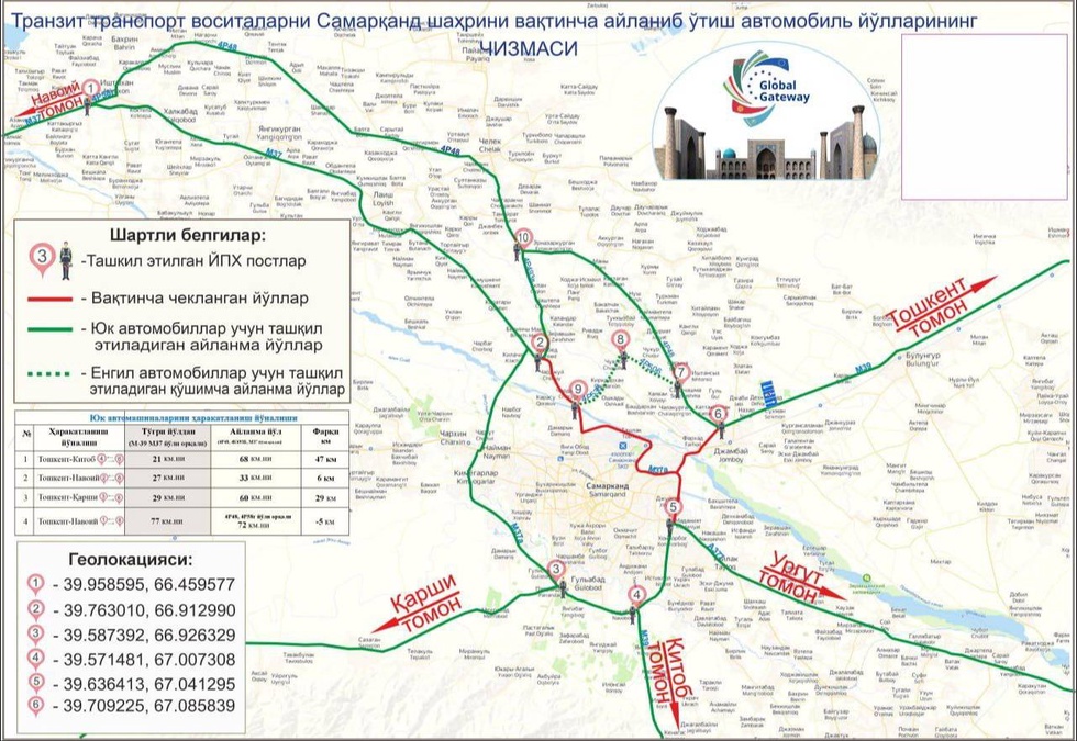 «Управление безопасности дорожного движения просит всех водителей и гостей города отнестись с пониманием к временным мерам и заранее планировать свой маршрут. По возможности перенесите поездку в Самарканд на другие даты», - говорится в сообщении.