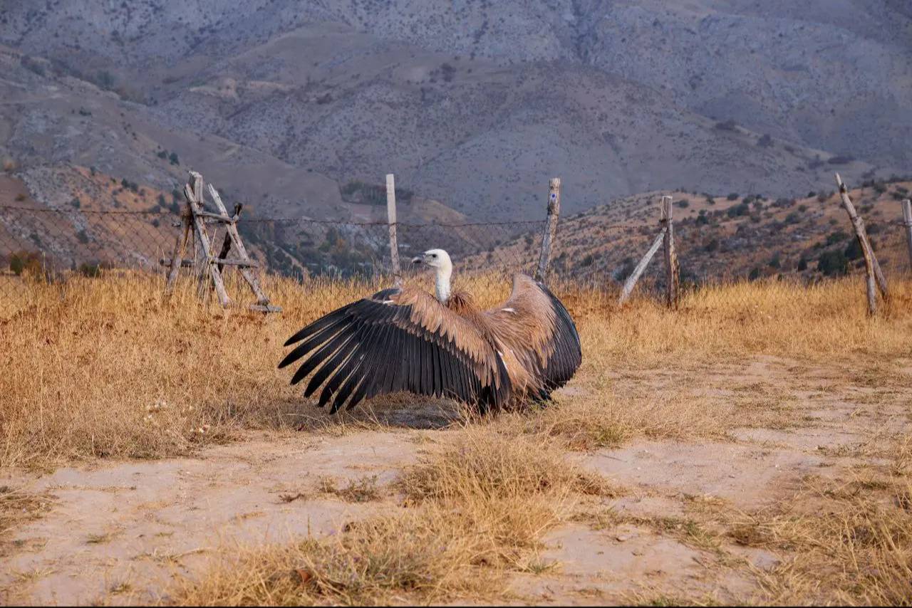 После прохождения специального медицинского обследования в реабилитационном центре Зарафшанского национального природного парка, снежного сипа выпустили в дикую природу.
