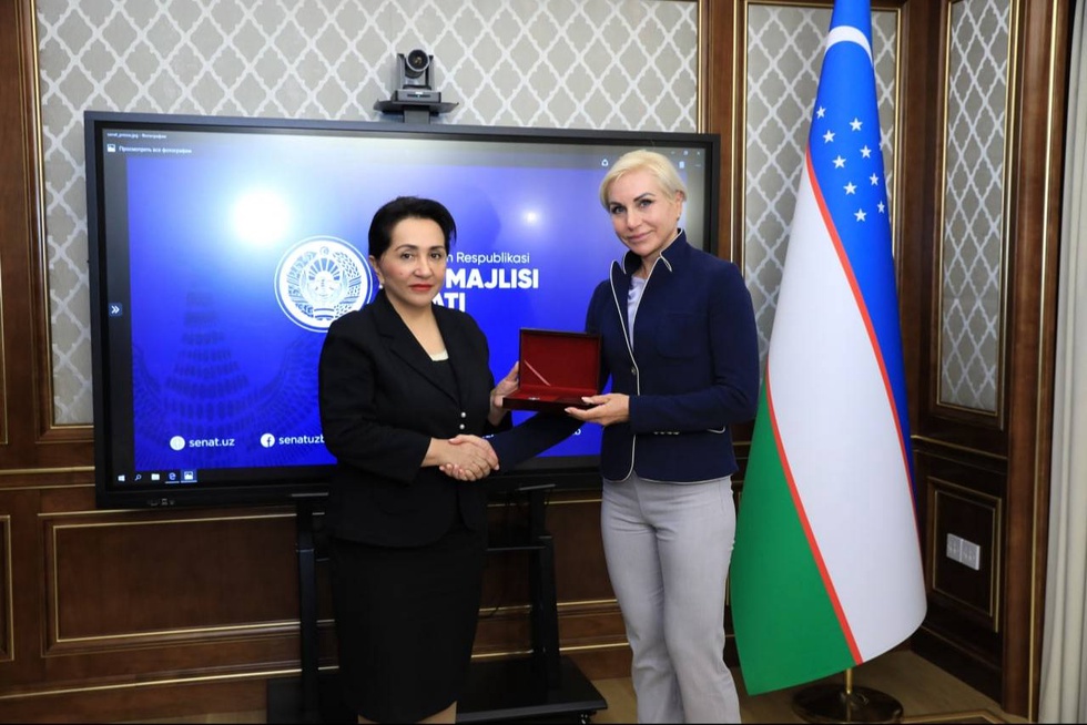 Награду вручила Председатель Сената, председатель Федерации велосипедного спорта Узбекистана Танзила Нарбаева.