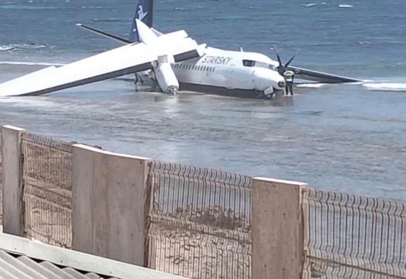Сообщается, что воздушное судно рухнуло на берегу Индийского океана. Очевидцы, находящиеся на пляже, заметили, что самолет летел слишком низко, после чего проехался по мелководью.
