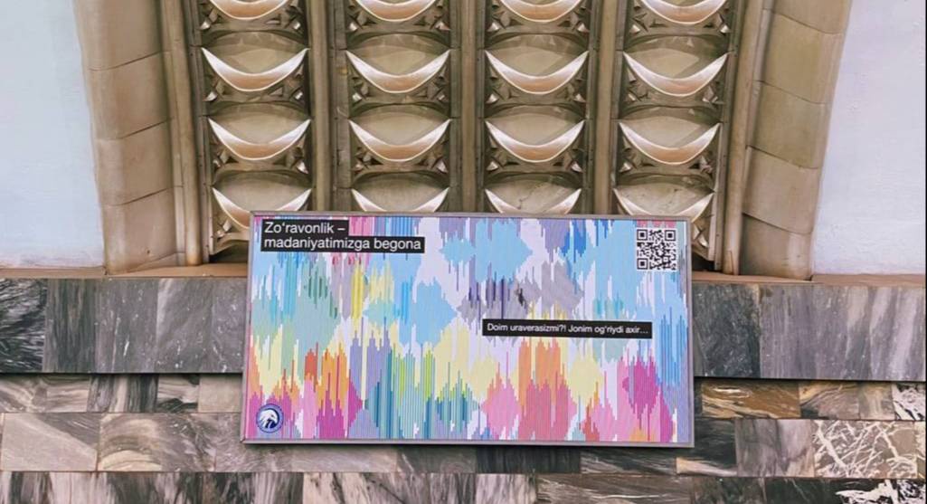 На баннерах, размещенных на станциях и в вагонах столичного метро, изображены крики женщин и девочек во время насилия и применения к ним силы в виде адрасных орнаментов и звуковой волны.
