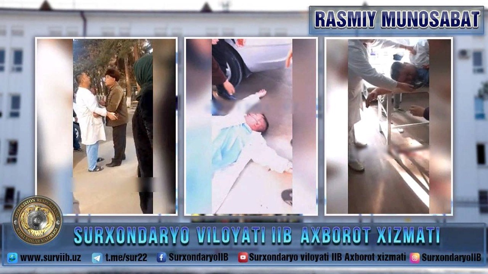 По информации Управления внутренних дел Сурхандарьинской области, инцидент произошел накануне, 9 января, около 14:30 в махалле «Косиблар» в Байсунском районе. Гражданин Ш.Х. нанес врачу Ф.Ж. районного медицинского объединения телесные повреждения, отчего тот упал на землю и потерял сознание.