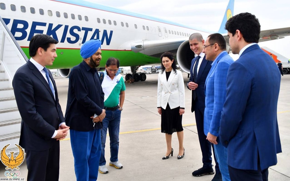Важного гостя встретили министр Развития спорта Адхам Икрамов, вице-президент Олимпийского совета Азии Отабек Умаров, Генеральный секретарь НОК Узбекистана Ойбек Касимов и заместитель председателя Комитета Азизжон Камилов.