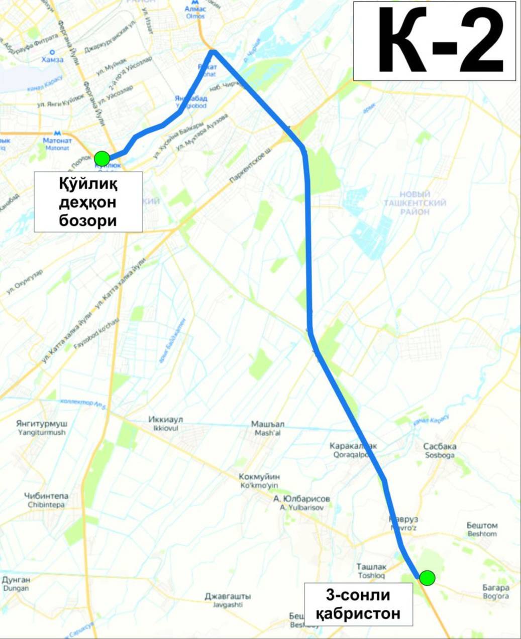 К–2 «рынок Куйлюк - кладбище № 3 (Уртасарай)».