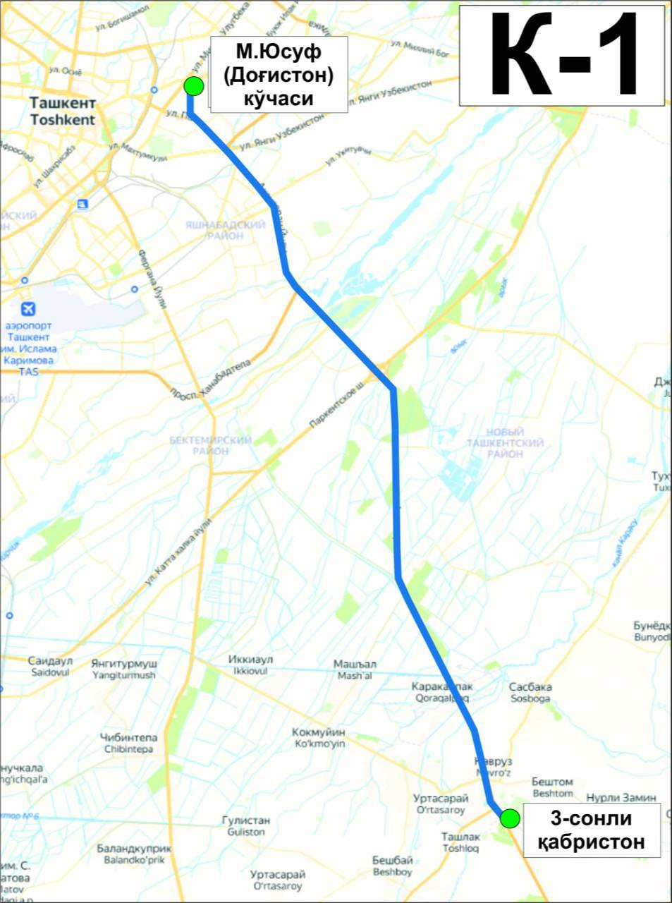 К–1 метро «Буюк ипак йули» ул. М. Юсуфа (Дагестанская) - кладбище № 3 (Уртасарай);