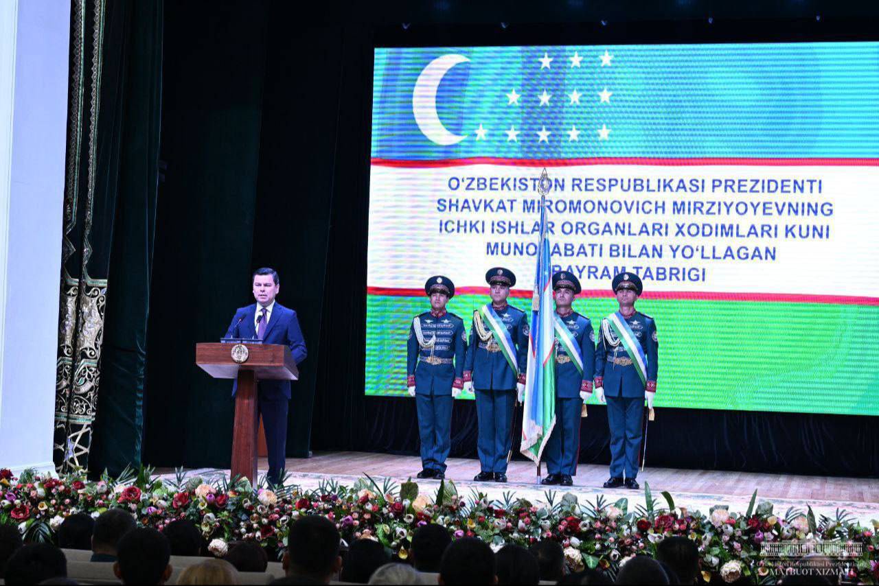 Шерзод Асадов зачитал праздничное поздравление Президента Шавката Мирзиёева сотрудникам и ветеранам системы.