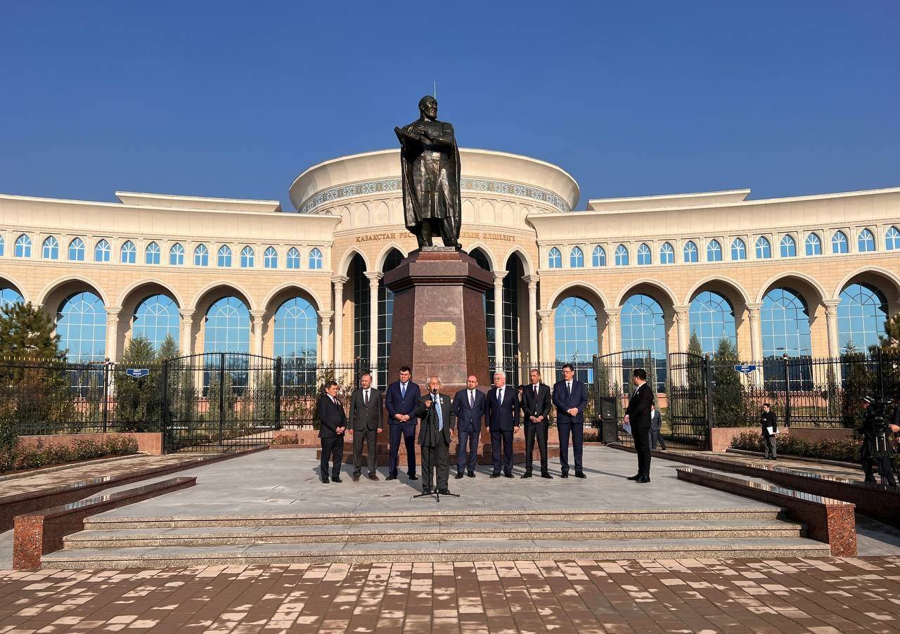 Далее официальные лица отправились в Посольство Казахстана в Узбекистане, где прошла церемония возложения цветов к памятнику казахского писателя Абая Кунанбаева.