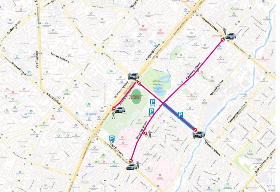 - с пересечения улиц Мукимий и Чиланзар до пересечения улиц Чилонзар и малой кольцевой автомобильной дороги;