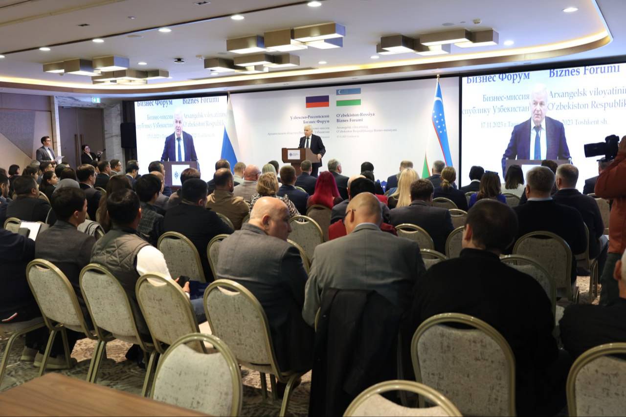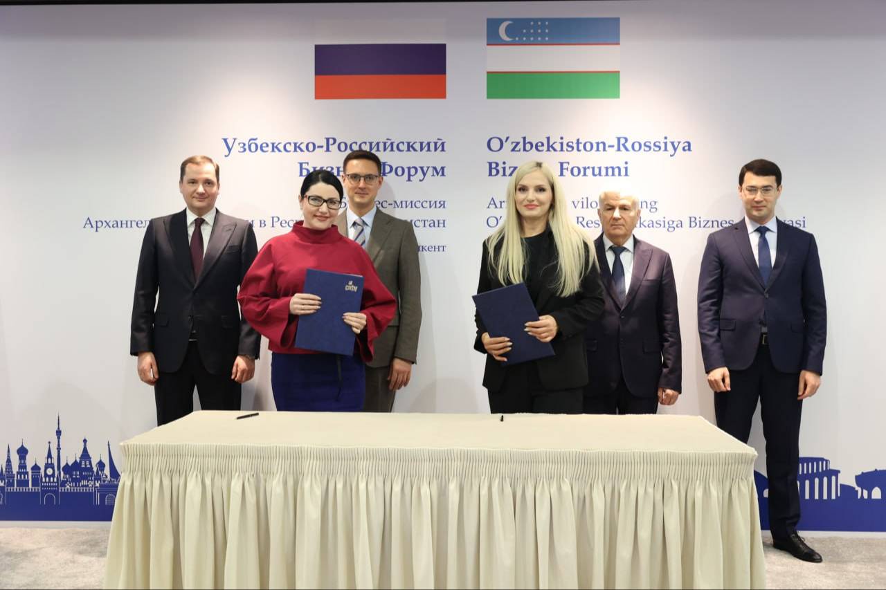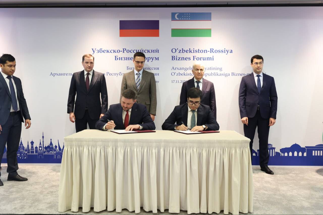 После состоялась церемония подписания двусторонних документов, среди которых соглашение о сотрудничестве между Ташкентским территориальным управлением ТПП Узбекистана и Союзом «Торгово-промышленная палата Архангельской области», соглашения о намерениях между ООО «Северная защита» и ООО «VIDCOM», ООО «Вудкомпонент» и ООО «BELUKROS», ООО «КИТ Софит» и ООО «BIG AUTOMATION COMPANY».