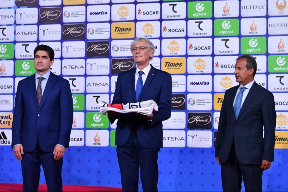 После этого был спущен флаг IJF, который Азизжон Камилов символически вручил г-ну Руже, а Генеральный секретарь Международной федерации дзюдо вручил флаг официальному представителю хозяев предстоящего первенства планеты.