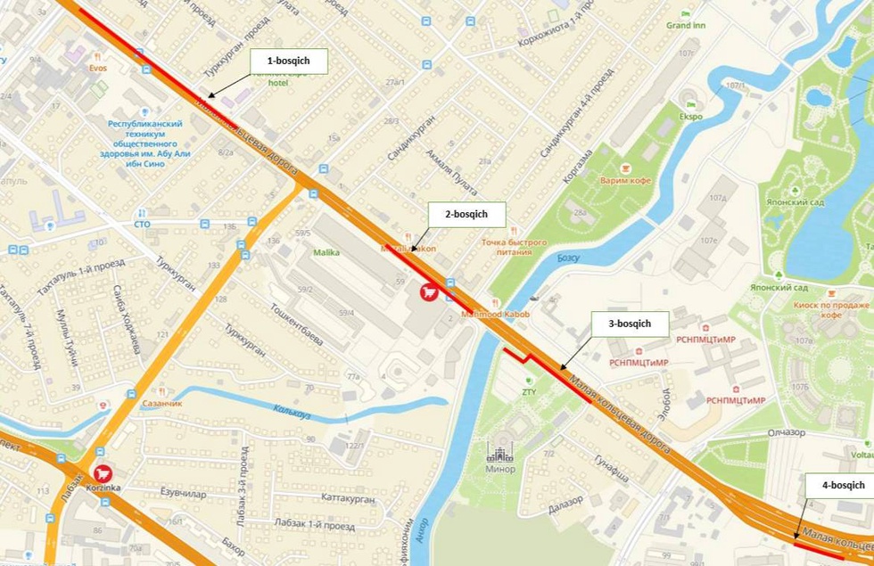 Как сообщает пресс-служба хокимията Ташкента, в связи с этим на первом этапе работ с 19 апреля 2024 года на семь дней будет закрыта одна сторона направления движения от пересечения МКАД с улицей Турккурган до пересечения с улицей Адхама Рахмата.