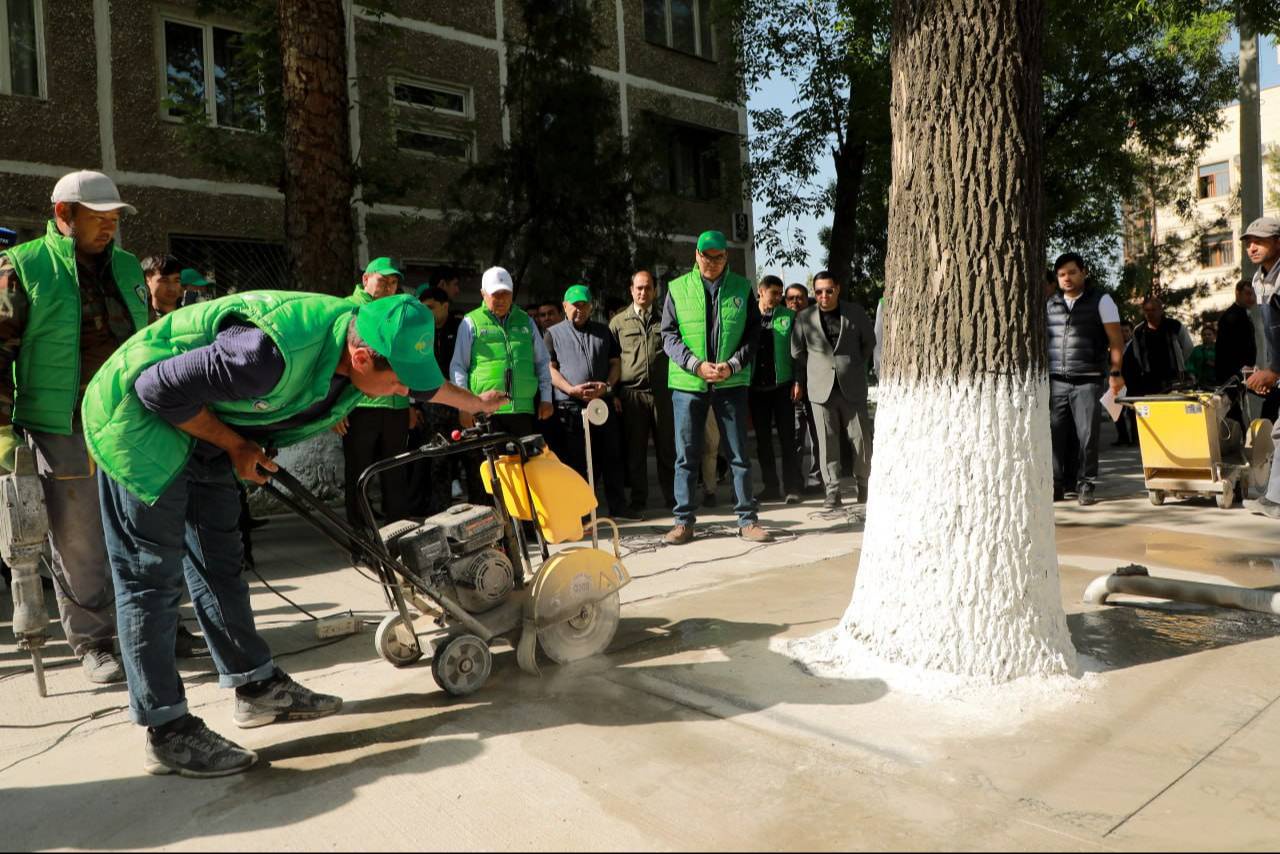 В своем выступлении министр ресурсов Азиз Абдухакимов подчеркнул, что главной целью данной инициативы является вскрыть основание забетонированных или мощеных деревьев и обеспечить их выживание.