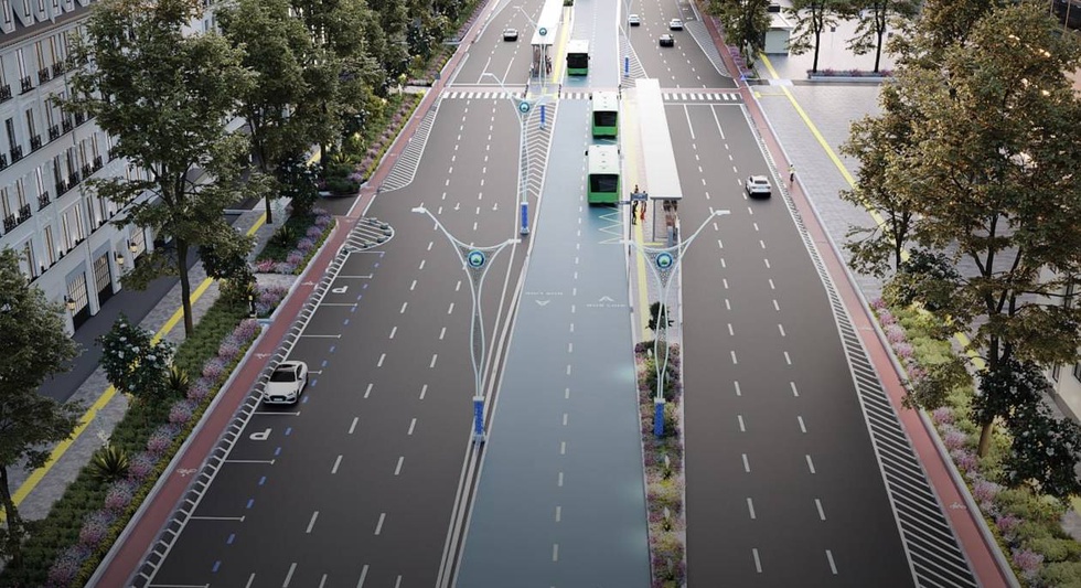 • Автобусы движутся по специальной выделенной полосе в центральной части дороги.