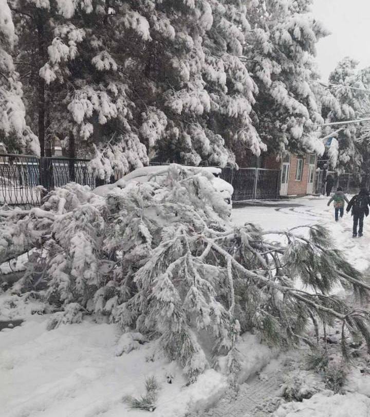 «Проливные дожди привели к набуханию крон и ослаблению структуры древесины. Резкое похолодание до -2°C после дождя сделало ветви хрупкими. Лед и снег на деревьях увеличили их вес, что стало причиной облома веток и повреждений», - подчеркнули в администрации.