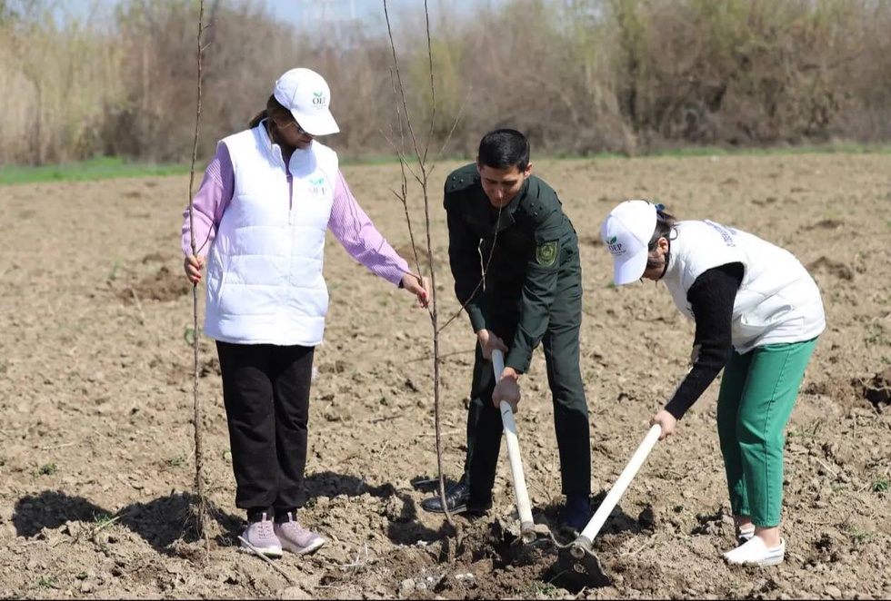 В ходе работ на территории 1,2 га в махалле Куёшли Зангиатинского района Ташкентской области, Министерством экологии, охраны окружающей среды и изменения климата совместно с Генеральной прокуратурой высажено 1,5 тысячи саженцев плодовых деревьев, среди которых яблоня, персик и вишня.