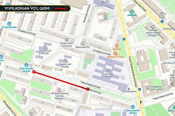 В связи с этим, с 28 августа по 4 сентября текущего года 20-метровый участок улицы Якуба Коласа возле Центральной многопрофильной поликлиники медицинского объединения Мирабадского района (напротив 110-й общеобразовательной школы) будет закрыт для всех видов автотранспорта.