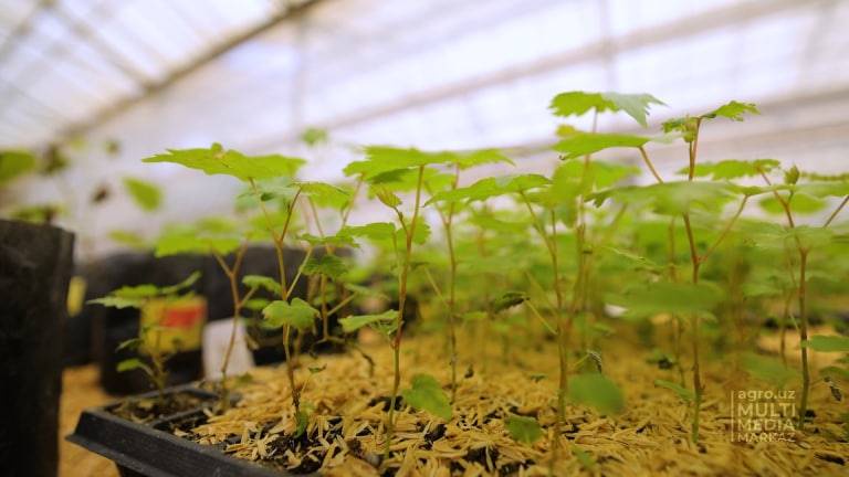 Всего, в теплицах Национального центра выращиваются 1 млн штук саженцев винограда, включая семь сортов столового винограда и 10 винных сортов.