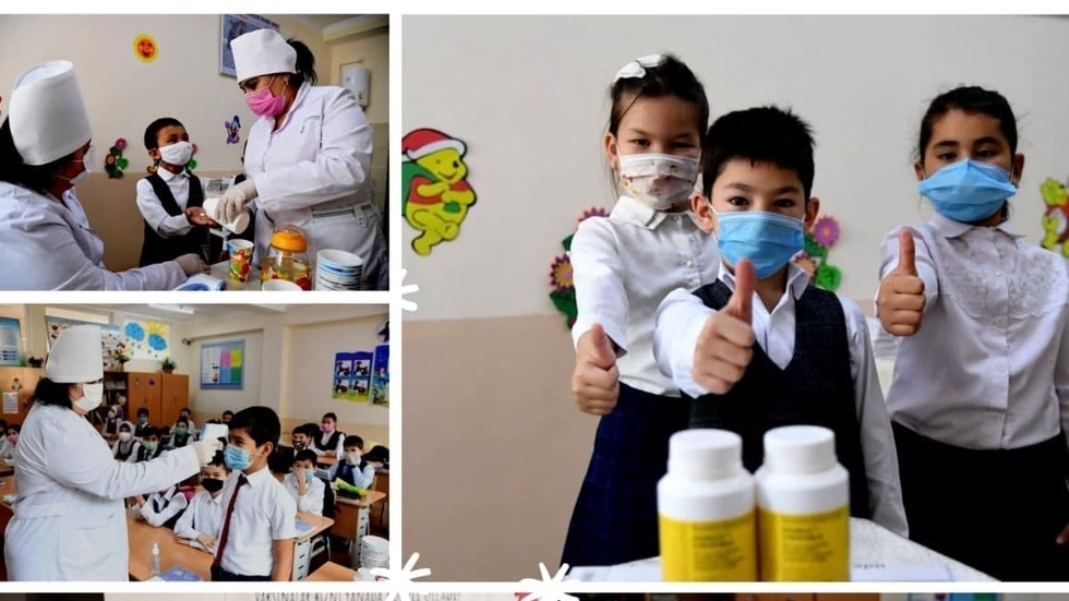 Дети получают лекарства в детских садах и школах, а выездные группы, организованные учреждениями первичной медико-санитарной помощи и региональными отделениями Службы санитарно-эпидемиологического благополучия и общественного здоровья, раздают лекарства по системе «Махаллабай» детям, находящимся на дому.