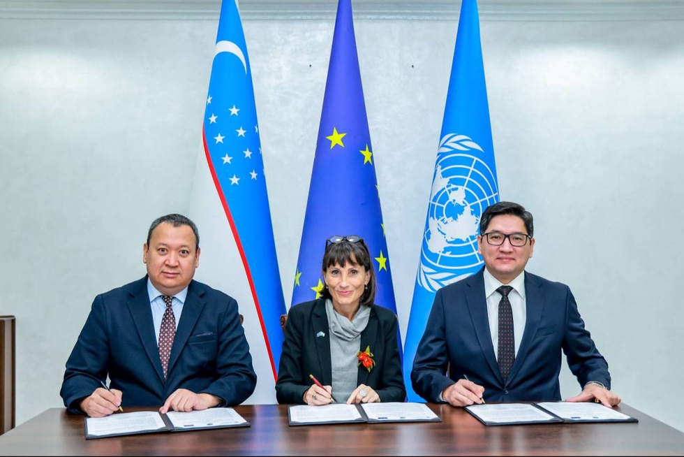 Трехсторонний документ подписали заместитель министра экологии, охраны окружающей среды и изменения климата Жусипбек Казбеков, глава делегации Европейского союза (ЕС) в Узбекистане Шарлотт Адриан и заместитель представителя Продовольственной и сельскохозяйственной организации ООН (ФАО) в Узбекистане Шерзод Умаров.