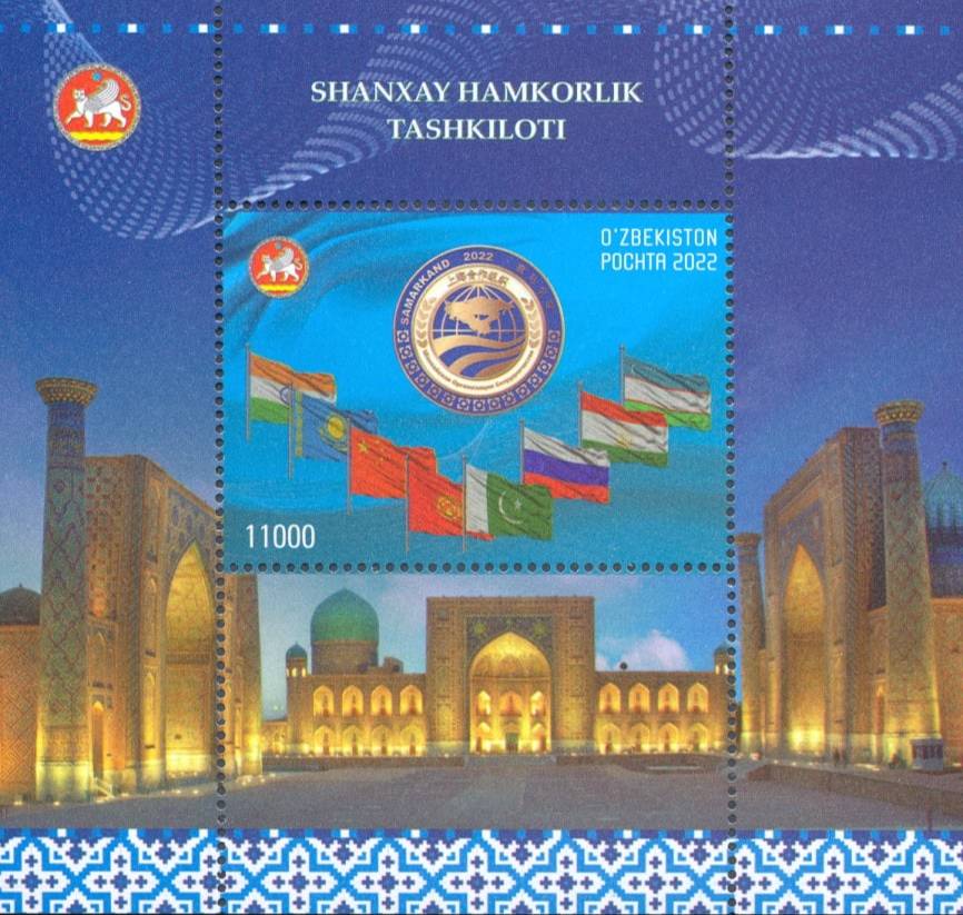 В связи с этим важным событием, по инициативе Министерства по развитию информационных технологий и коммуникаций Республики Узбекистан АО «Узбекистон почтаси» подготовлена и введена в обращение с 12 сентября 2022 года специальная почтовая марка (в виде почтового блока), посвященная Саммиту Шанхайской организации сотрудничества.