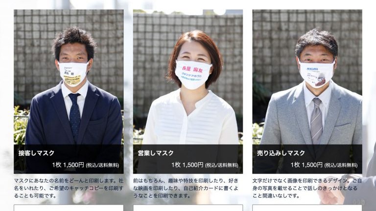 Компания «Nagaya Printing» начала производить «Meishi Masks» (Meishi переводится как «визитная карточка») в трех вариантах: «Customer Service Mask» (похожа на стандартный шаблон визитной карточки с полями для имени сотрудника, названия и логотипа компании), «Sales Mask» (имя на самом видном месте) и «Selling Mask» (можно добавить свою фотографию).