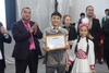 Турсинали Ахмедов и руководитель Навоийского городского казахского национального центра Ажаргуль Усманова вручили подарки одаренным, талантливым, любящим поэзию ученикам школы.