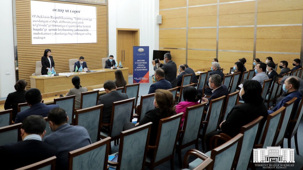В связи с этим, в хокимияте города Ташкента по инициативе Демократической партии Узбекистана «Миллий тикланиш» состоялся открытый диалог по обсуждению законопроекта Республики Узбекистан «О внесении изменений и дополнений в Закон Республики Узбекистан «О введении узбекского алфавита, основанного на латинской графике»».