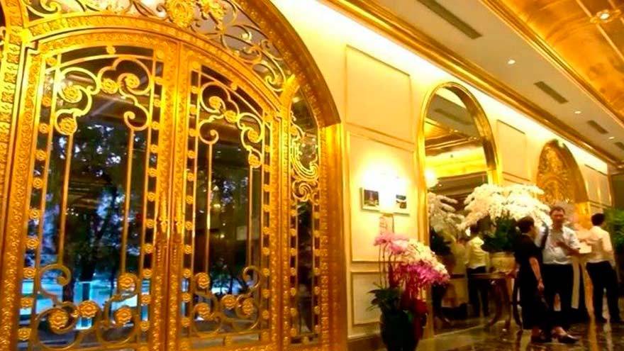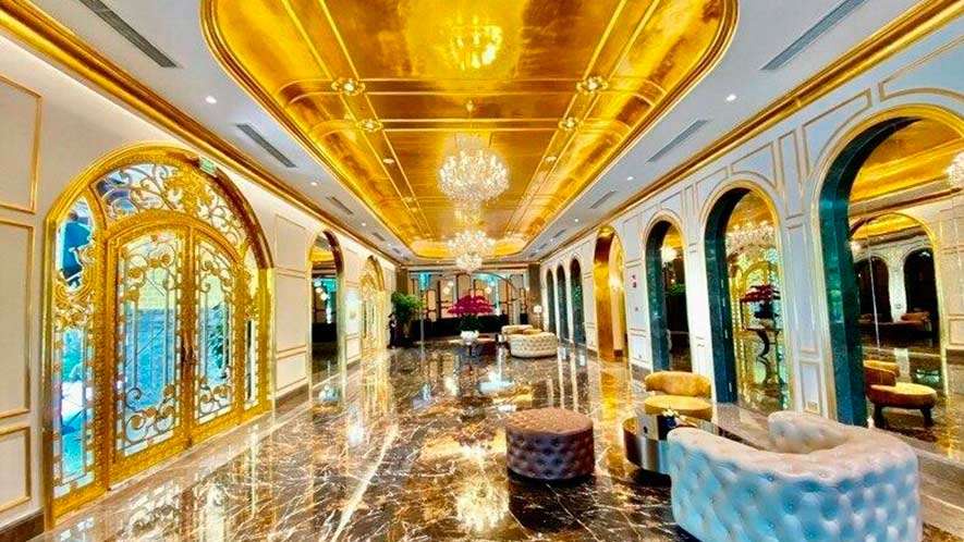 Позолоченные ванны, раковины, туалеты и даже изголовья кроватей размещены за массивным золотым фасадом. К услугам гостей отеля бассейн на крыше с золотой кафельной плиткой в 24 карата.