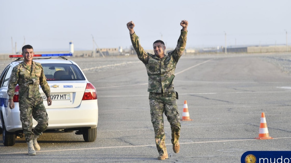 То есть они должны пересечь обозначенную линию финиша на ровном поле, оборудованном конусами, выполняя разные элементы водительского пилотажа. На данном этапе честь страны защищали сержанты III степени Сиддик Аъзамов, Аббас Амиров и Фарход Мусаев.
