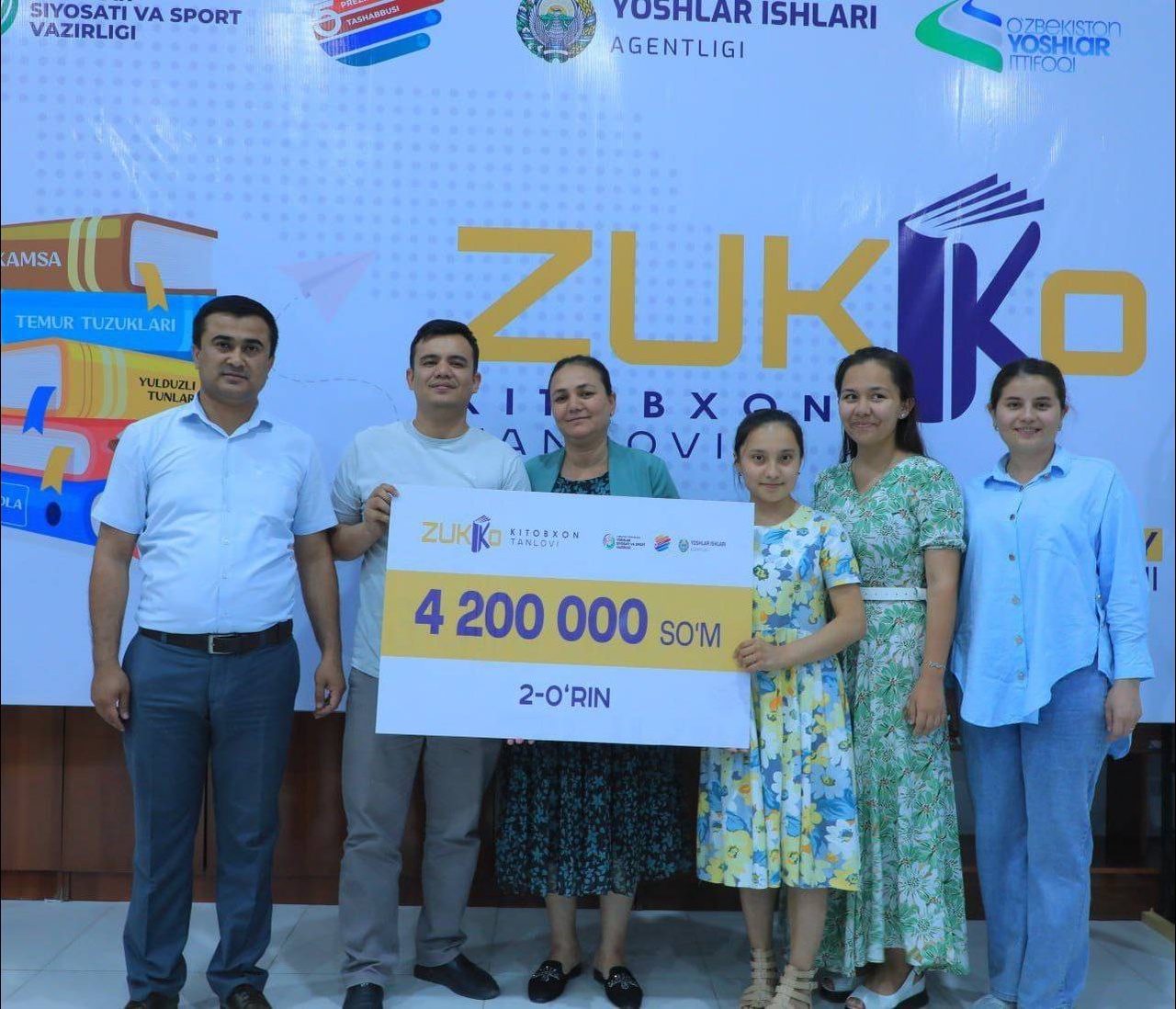 Амина Бадритдинова заняла второе место ы организованном Агентством по делам молодежи Навоийской области «Зукко китобхон». Ей вручен ваучер на сумму 4 млн 2 тыс сумов.