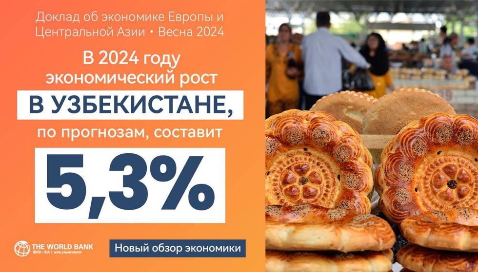 В докладе отмечается, что экономика Узбекистана в 2023 г. выросла на 6%, а в 2024 г. прогнозируемый рост ВВП составит 5,3%. Ожидается, что в этом году страна войдет в пятерку самых быстрорастущих экономик в регионе Европы и Центральной Азии наряду с Таджикистаном (6,5%), Арменией (5,5%), Грузией (5,2%) и Кыргызстаном (4,5%).