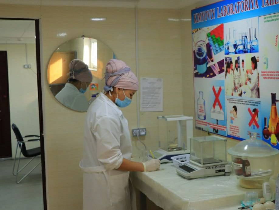 В настоящее время в технологической лаборатории производственного участка «Учкудук», расположенной на территории участка переработки продуктивных растворов, в среднем проводится более 250 химических анализов в день. В частности, химический анализ готовой продукции, производимой в ГТР, растворов в технологических процессах, ионизирующей смолы, технологических растворов в локальных сорбционных устройствах, проб, отобранных из скважин, а также из наблюдательных скважин в геотехнологических блоках, вместе с этим приготовление химических реагентов, других видов образцов.