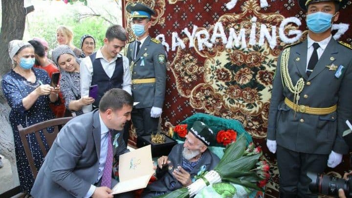 Глава области зачитал поздравительное послание Президента Республики Узбекистан ветерану войны и вручил ему подарок – разовую денежную премию.
