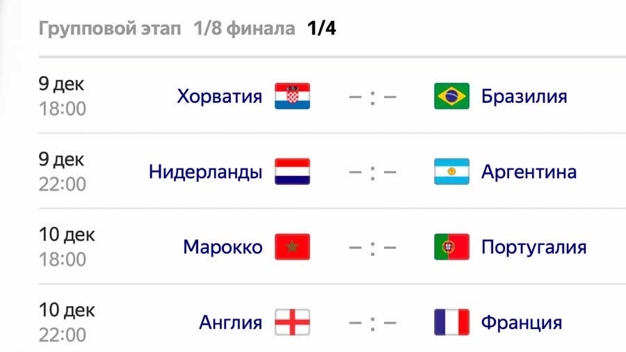 Теперь бразильцам будет противостоять дружный коллектив из Хорватии, который лишь в серии пенальти сломил сопротивление еще одного представителя Азиатского континента - сборной Японии. Педантичным игрокам из Страны восходящего солнца не хватило, видимо, вдохновения и импровизации, чтобы одолеть финалиста прошлого мундиаля в России.