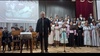 Далее хор мальчиков и девочек из отделения академического пения спел проникновенно знаменитую песню на стихи Василия Лебедева-Кумача «Священная война» под музыкальное сопровождение отделения духовых инструментов.