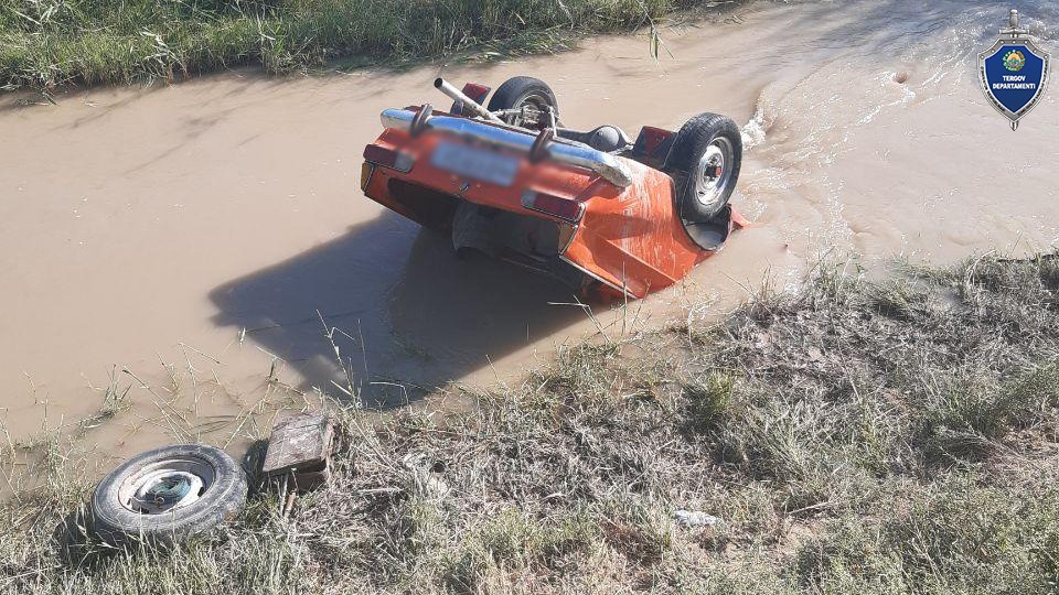 Водитель «Москвича» потерял управление и вылетел с дороги в арык. Причина - вылетело переднее колесо.