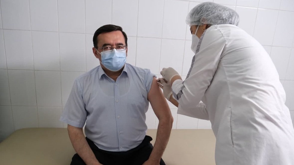 Заместитель министра здравоохранения, главный санитарный врач и глава Службы санитарно-эпидемиологического благополучия и общественного здоровья Баходир Юсупалиев 3 мая вакцинировался узбекско-китайским препаратом ZF-UZ-VAC2001.