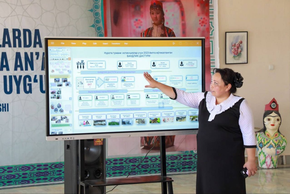 Заместителю Премьер-министра - Председателю Государственного комитета семьи и женщин Республики Узбекистан была презентована деятельность отдела семьи и женщин Канимехского района, проводимая по формированию «Женского баланса».