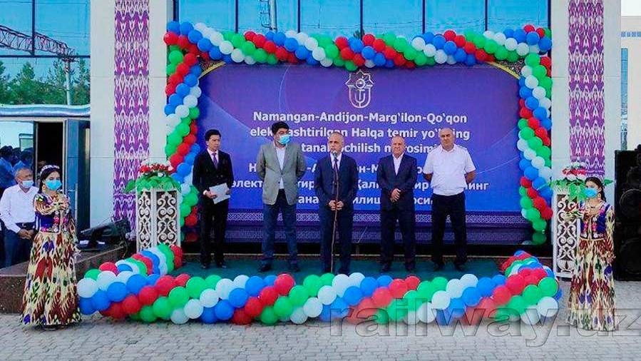 Мероприятие продолжается поездкой по кольцевой железнодорожной линии. Участники торжества стали первыми пассажирами электрифицированной кольцевой железной дороги в Ферганской долине, сообщает информационно-аналитический медиа центр.