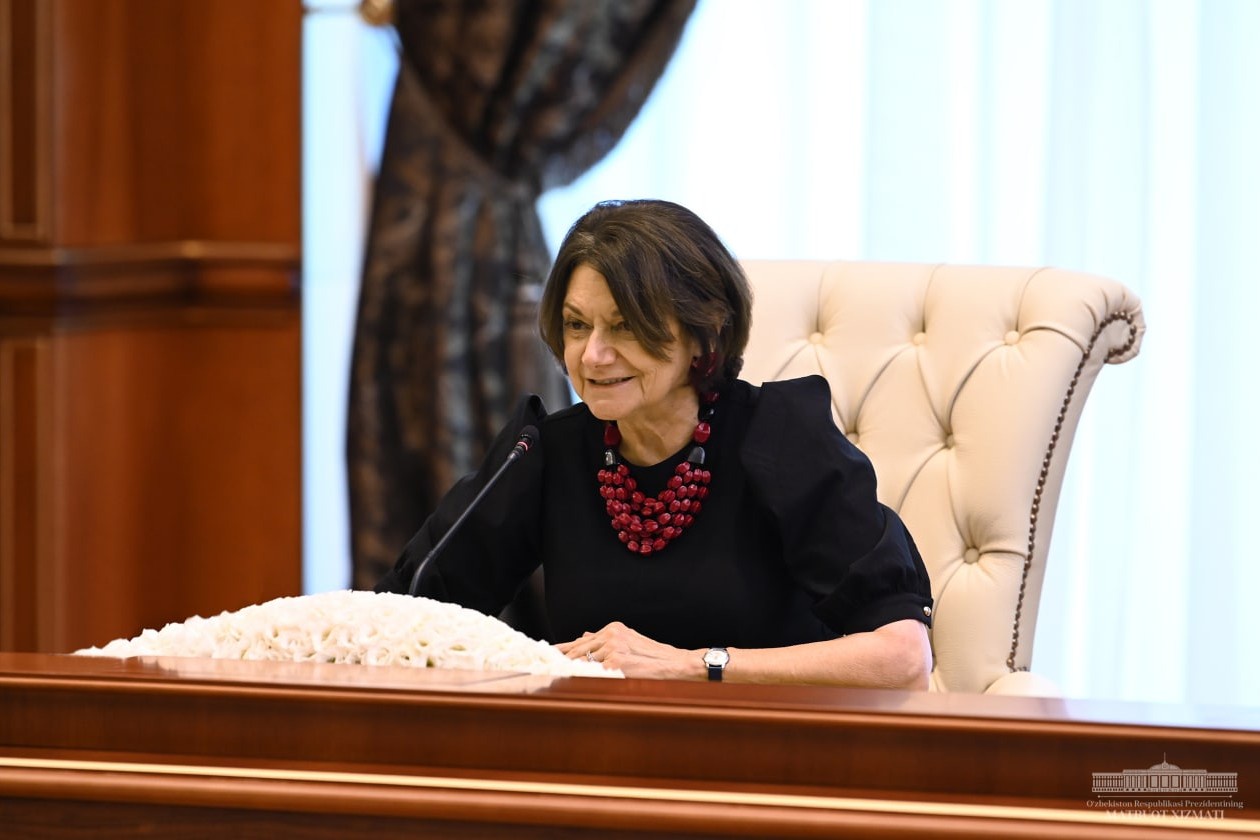 Розмари ДиКарло ба Президент Шавкат Мирзиёев барои қабули самимӣ изҳори сипос кард. Вай аз номи Дабири кулли Созмони Милали Муттаҳид Антониу Гутерриш салом ва дастгирии ислоҳотро, ки дар доираи Стратегияи рушди Ӯзбекистони Нав барои солҳои 2022-2026 амалӣ карда мешавад, расонд.
