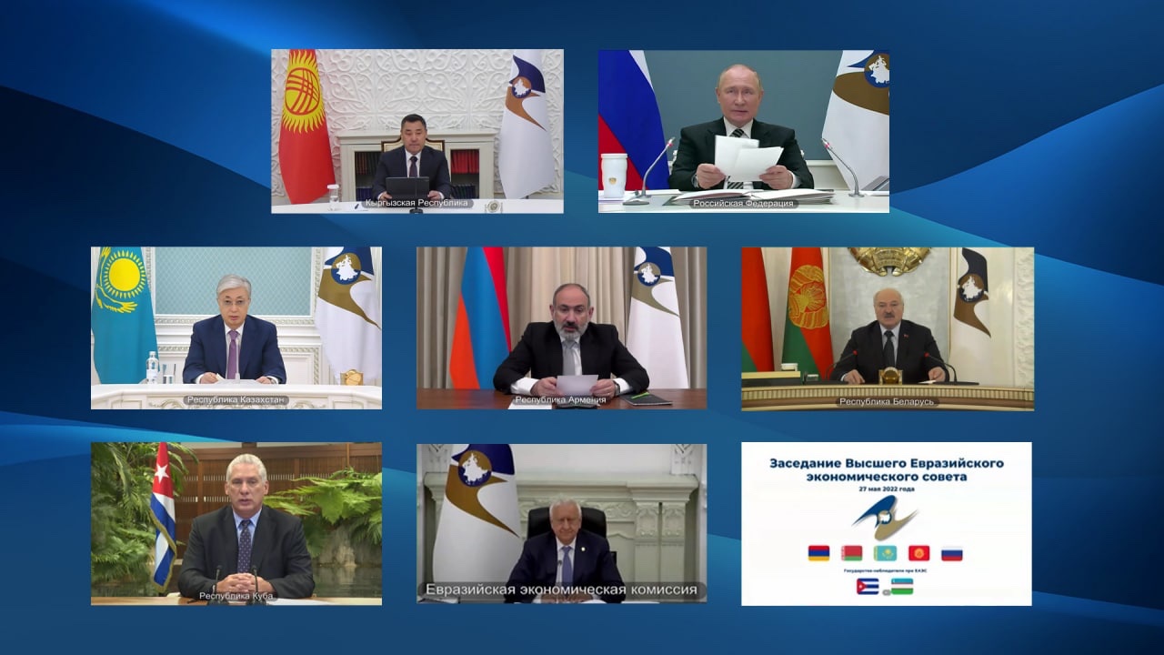 Дар он, ки дар андозаи видеоконфронс зери раисии Президенти Ҷумҳурии Қирғизистон Садир Жапаров баргузор гардид, инчунин Президенти Федератсияи Русия Владимир Путин, Президенти Ҷумҳурии Белорус Александр Лукашенко, Президенти Ҷумҳурии Қазоқистон Қосим-Ҷомарт Тоқаев, Сарвазири Ҷумҳурии Арманистон Никол Пашинян, Президенти Ҷумҳурии Куба – мамлакати нозир дар назди Иттиҳоди иқтисодии Авросиё (ИИА) Мигел Бермудес ва раиси Коллегияи Комиссияи иқтисодии Авросиё Михаил Мясникович иштирок намуданд.