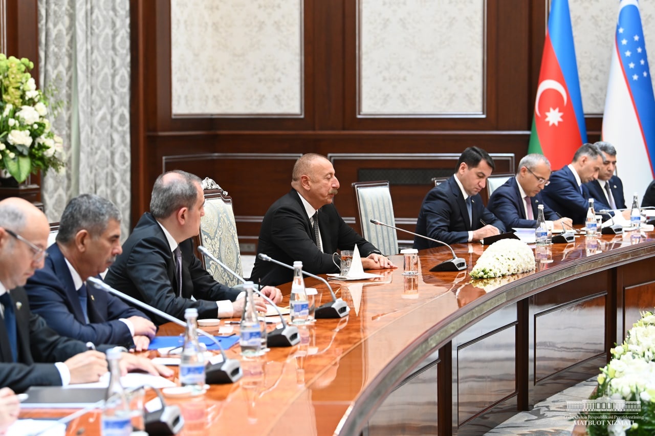 Шавкат Мирзиёев аз сатҳи бадастомадаи ҳамкориҳои мутақобилан судманд, таҳкими риштаҳои дӯстӣ ва ҳусни тафоҳум байни кишварҳоямон изҳори қаноатмандии амиқ кард. Вай азми худро ба таҳкими минбаъдаи шарикии стратегии Ӯзбекистон ва Озарбойҷон ва бо мазмуни нави амалӣ ғанӣ гардондани он тасдиқ кард.